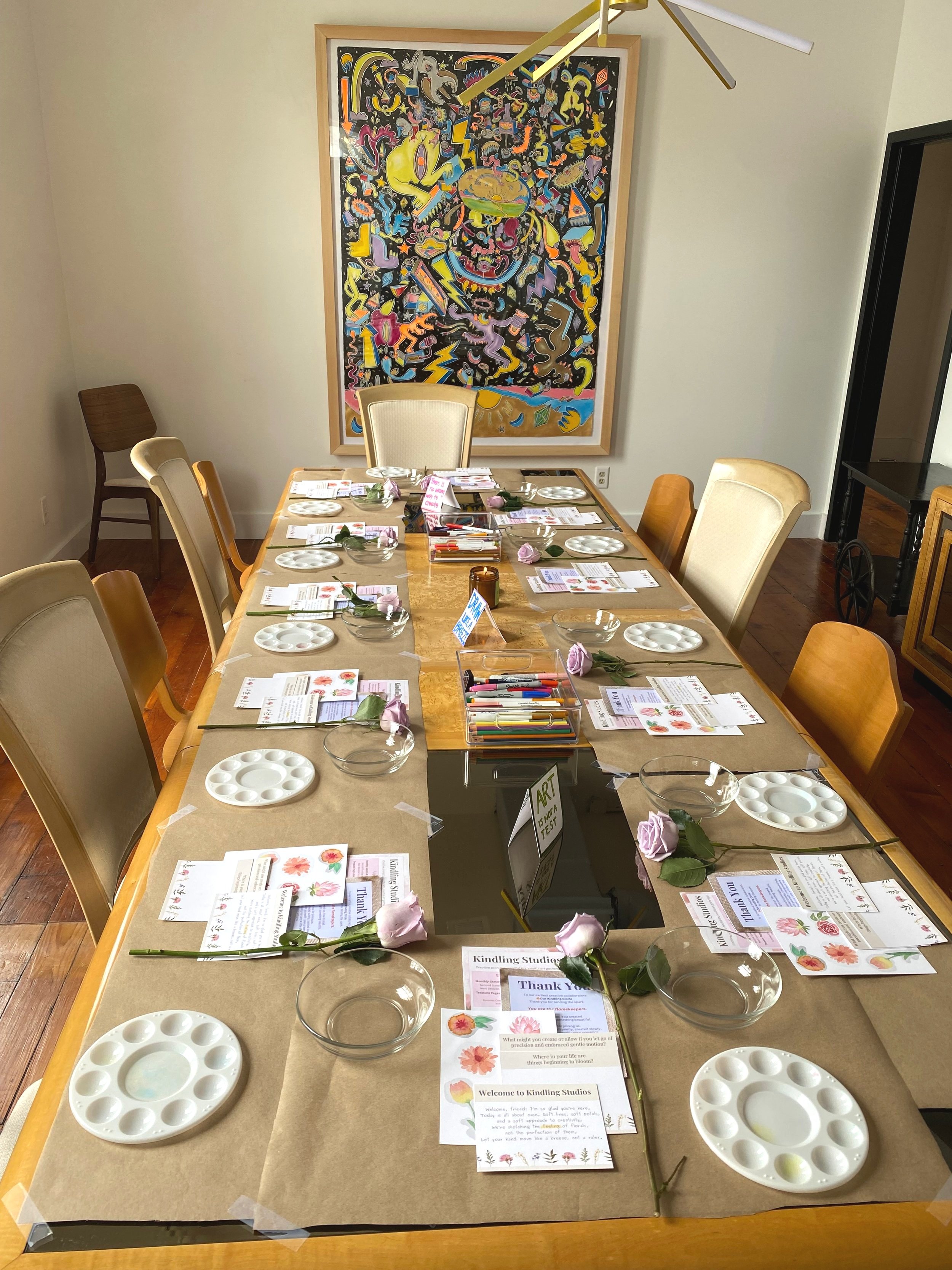 “Kindling events are always cozy, relaxed, and well-organized. I really enjoy journaling, watercolor, and connecting with like-minded people. The sessions are well curated and led. Can't wait for next month!”